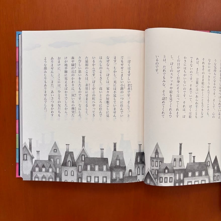 ひとりぼっちの若い絵かきのもとへ、夜ごと友だちの月が訪れて、空から見たことを聞かせます。