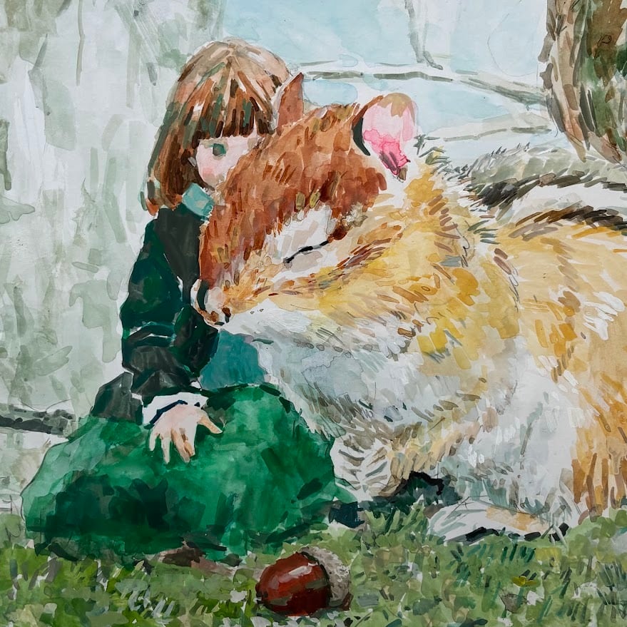 ◆原画:「少女とリスのないしょの話」