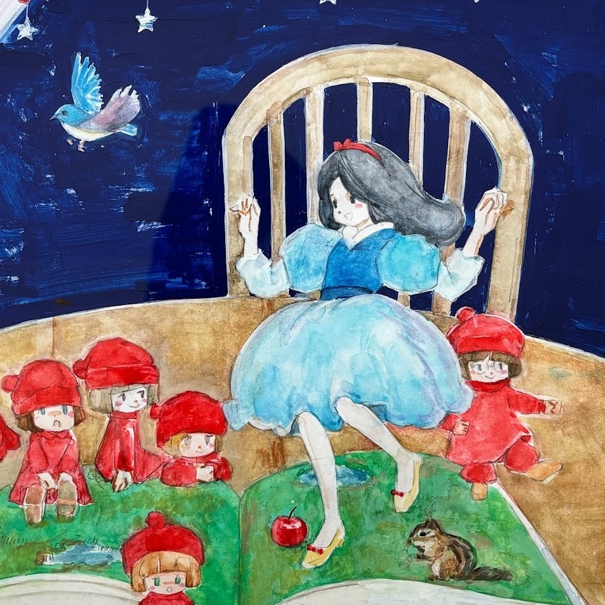 「憧れ」「がんばれ!女の子」をテーマにアナログ画材でガーリーな絵を制作。