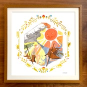 水彩絵の具やカラーインクの重なりやテクスチャを生かして描いています。