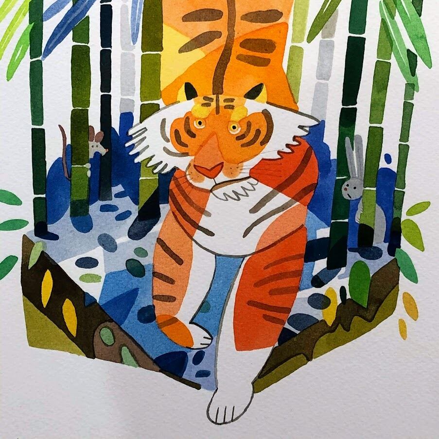 水彩絵の具やカラーインクの重なりやテクスチャを生かして描いています。