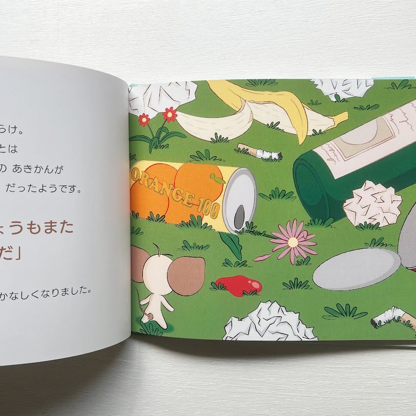「そんなことしても むだだよ」と 友だちのレイジーはあきれ顔だけど、 それでもあきらめずにゴミを拾い続けた。