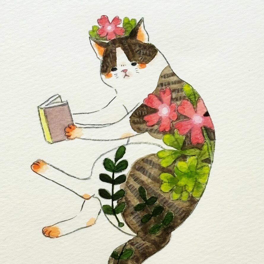 仕事では主にデジタル、作品展では水彩やアクリルなど、手描きで制作して います。